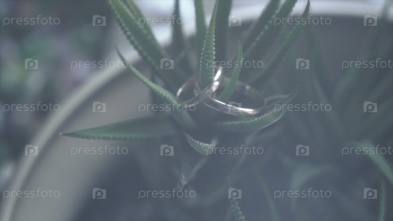 Обручальное кольцо в алоэ на белом деревянном фоне ближайший снимок