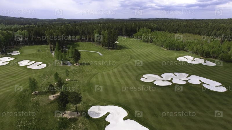 Вид сверху зеленого поля для гольфа, открытое поле на зеленой траве