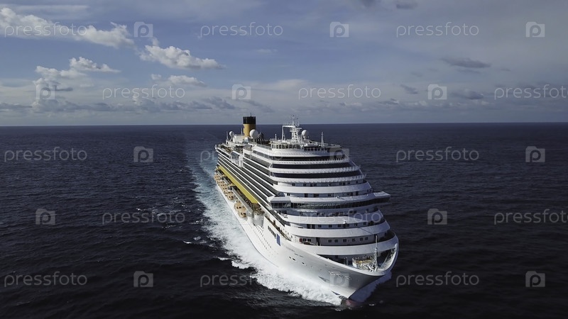 Боковый вид современного океанского лайнера в открытом море, концепция роскошных каникул