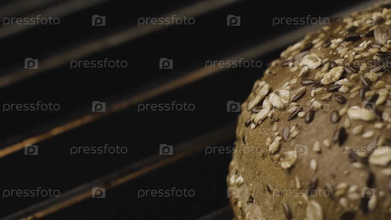 Ближайшее изображение горячего бургерского булочка на гриле. Скриншоты фондовых кадров. Вкусный хлеб из зерна обжарен. Бунт на гриле для вкусного бургера. Круглый лом хлеба, который жарят на огне