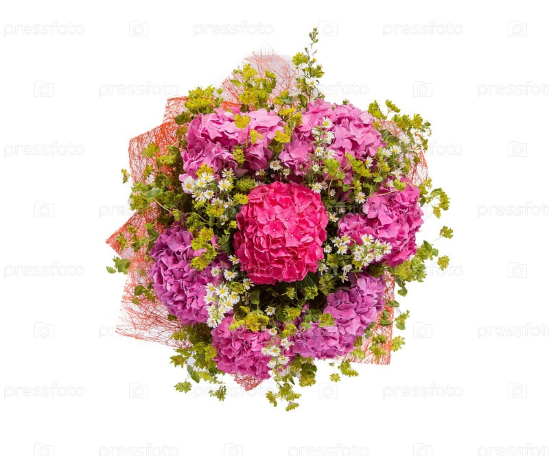 Букет цветов верхний вид на белом фоне