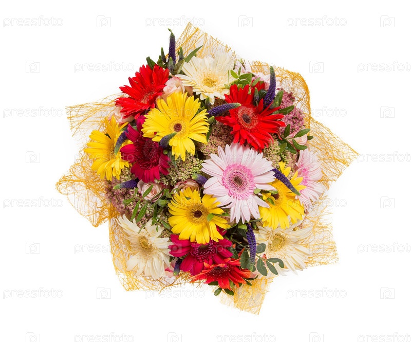 Букет цветов верхний вид на белом фоне