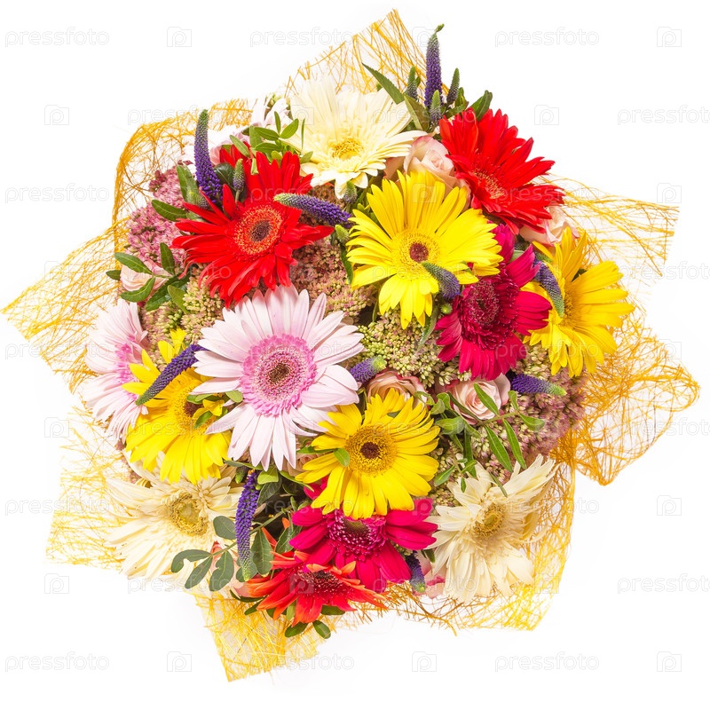 Букет цветов top view изолированный на белом