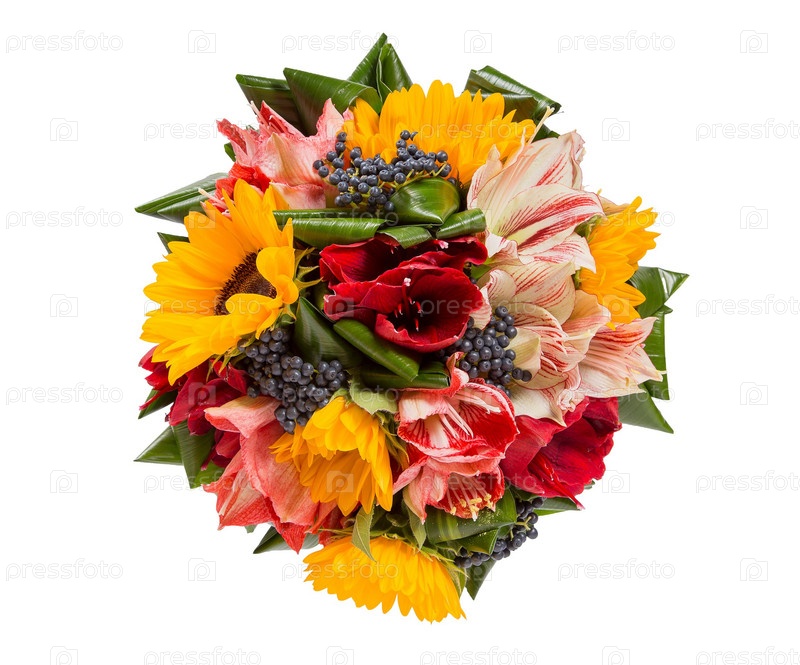 Букет цветов верхний вид на белом фоне