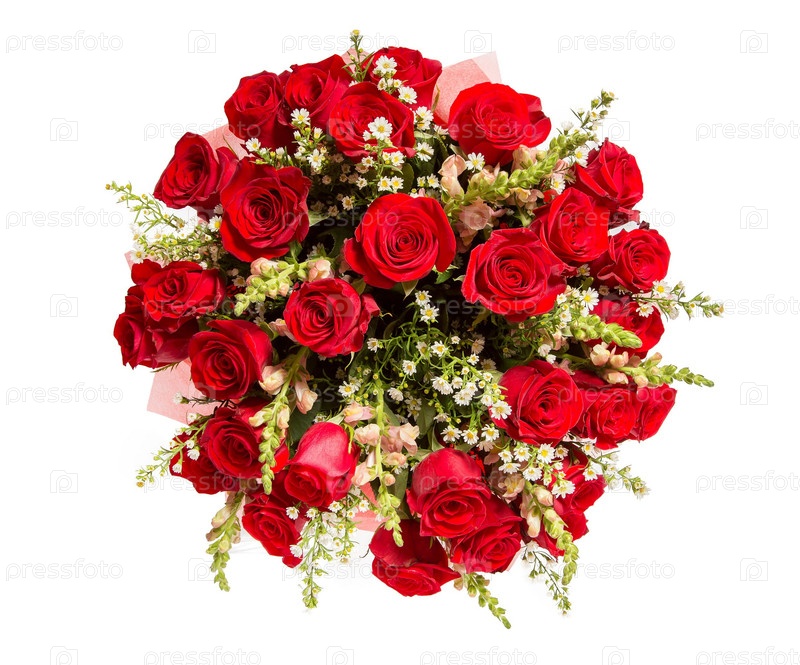 Букет цветов верхний вид на белом фоне