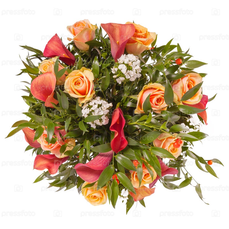 Букет цветов top view изолированный на белом
