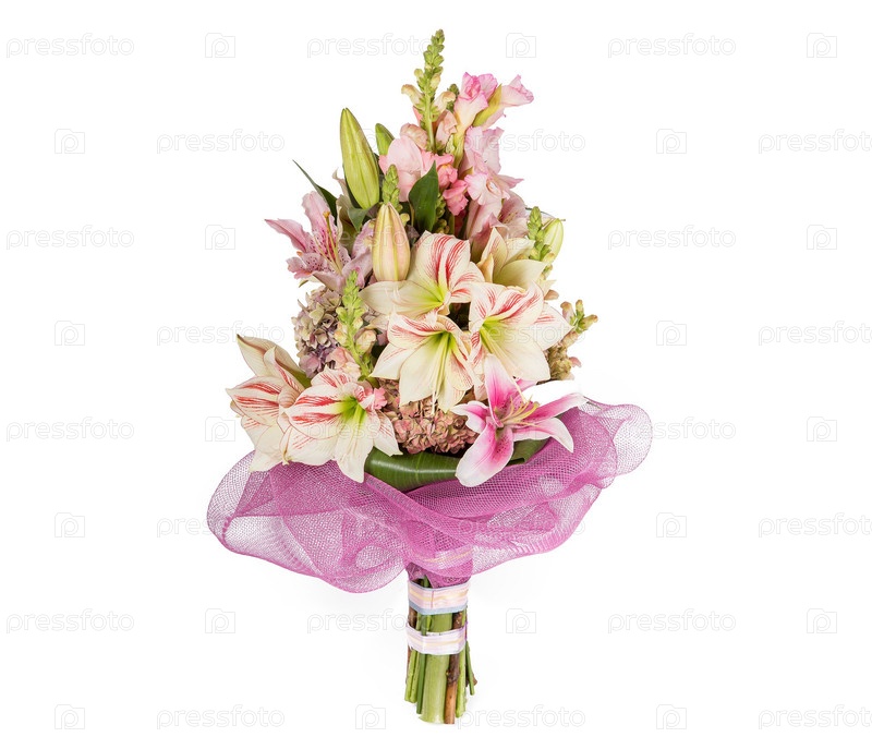 Букет цветов верхний вид на белом фоне