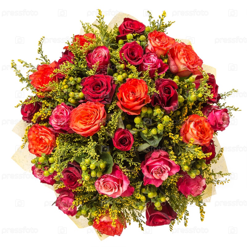 Букет цветов верхний вид изолированный на белом