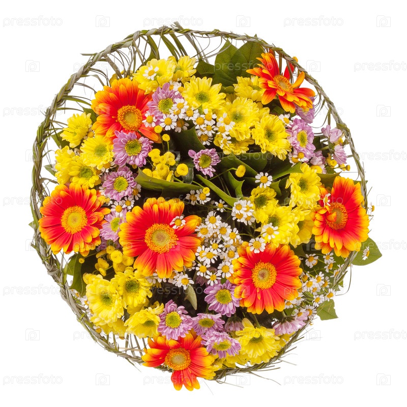 Букет цветов top view изолированный на белом
