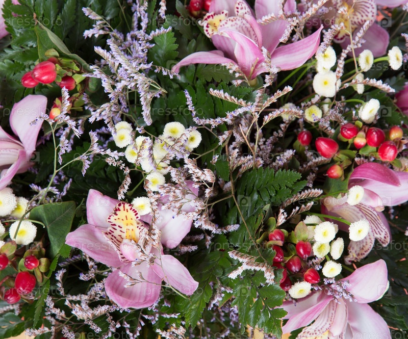 Букет цветов верхний вид на белом фоне