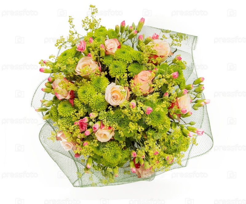 Букет цветов верхний вид на белом фоне