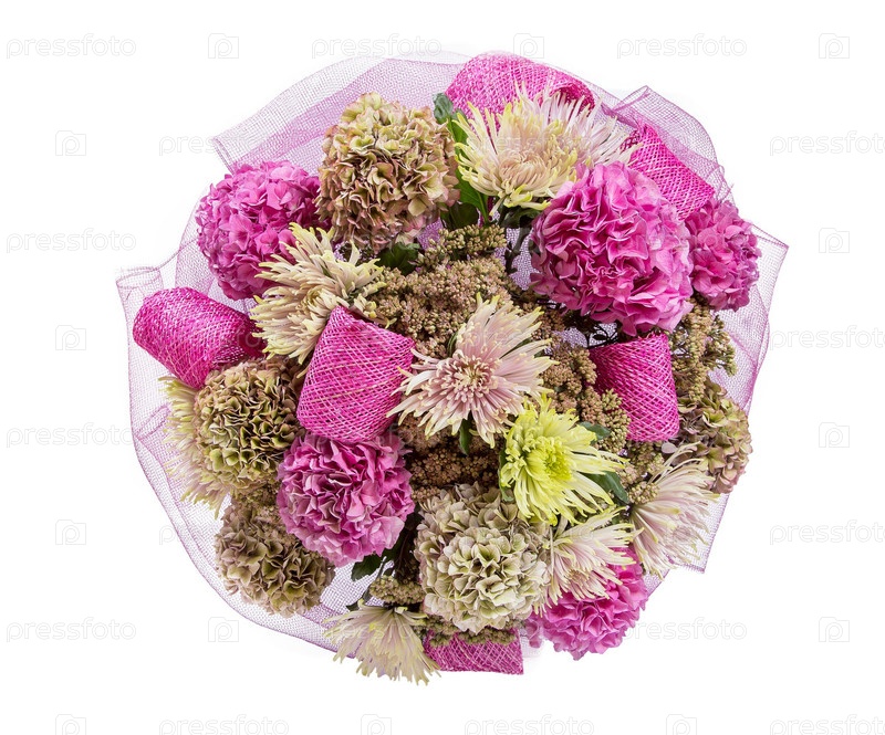Букет цветов верхний вид на белом фоне