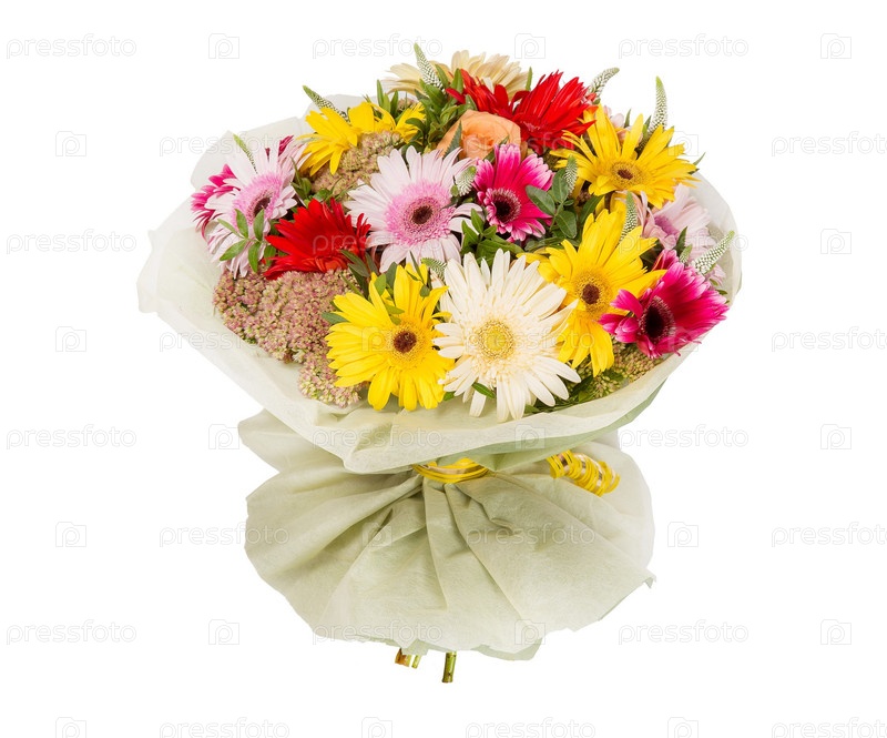 Букет цветов верхний вид на белом фоне