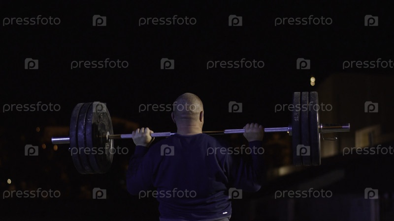 Тяжеловес поднимает стойку над головой. силовая тренировка с огромным весом. сильный кроссфит-спортсмен в середине тяжелый погрузчик в тренажерном зале бокса кроссфита