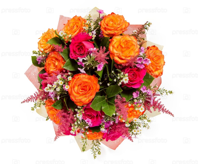 Букет цветов верхний вид на белом фоне