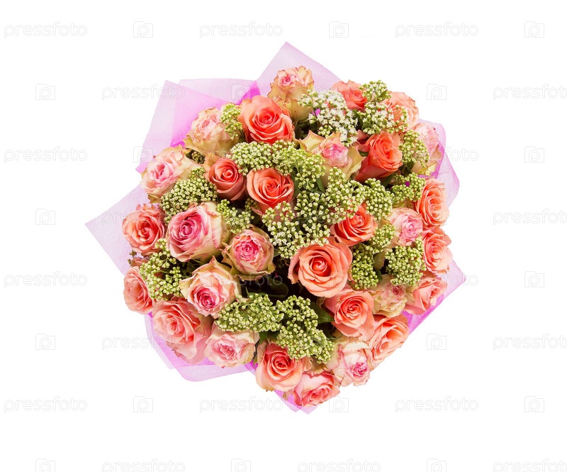 Букет цветов верхний вид на белом фоне