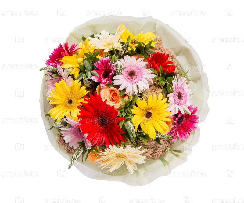 Букет цветов верхний вид на белом фоне