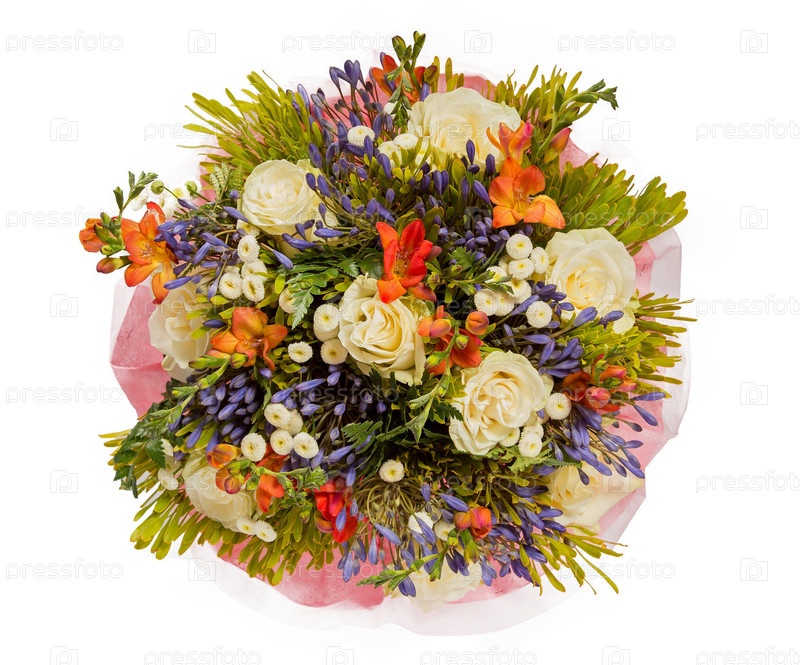 Букет цветов верхний вид на белом фоне