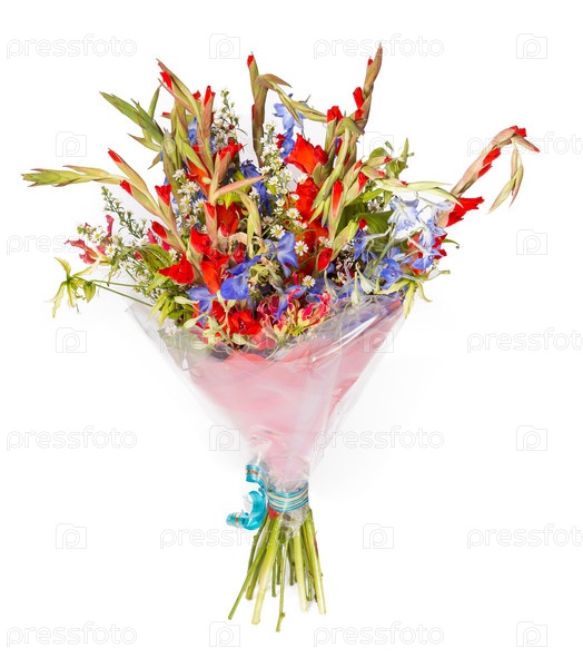 Букет цветов верхний вид на белом фоне