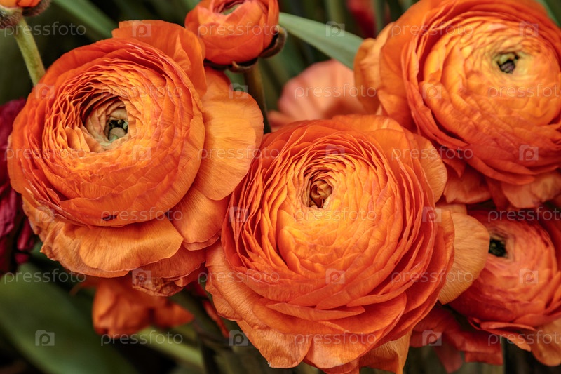 Красивый оранжевый травянистый пион. ближайший взгляд на Ranunculus aka buttercup цветок, изысканный, с розовыми цветами. персидский Buttercup