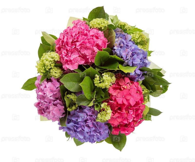 Букет цветов верхний вид на белом фоне