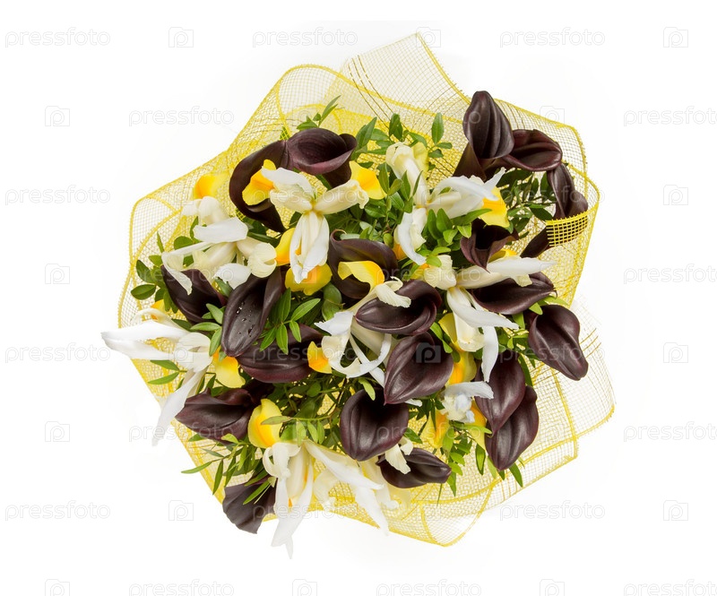 Букет цветов верхний вид на белом фоне