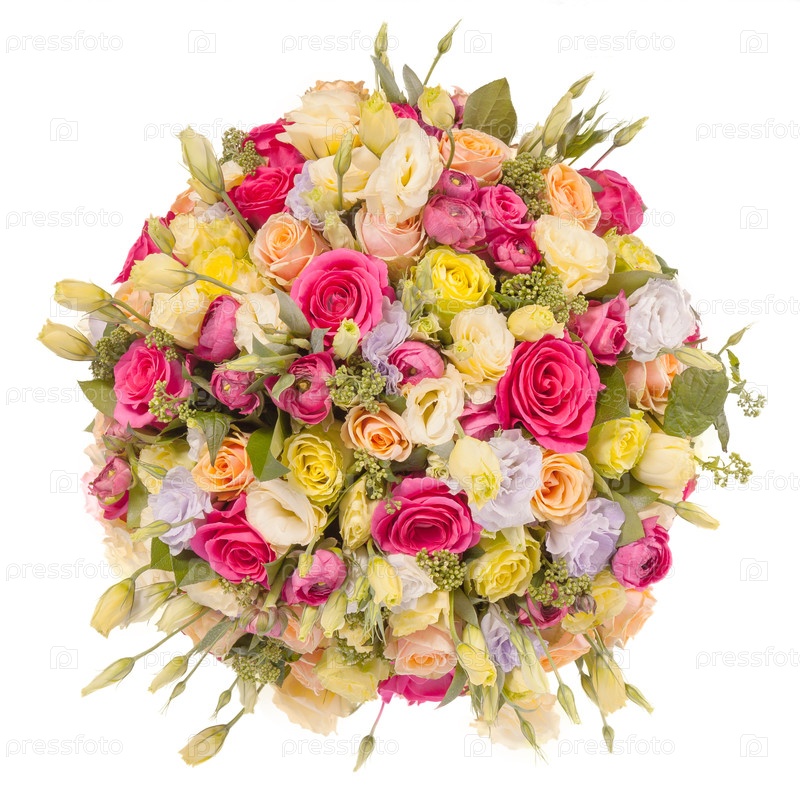 Букет цветов top view изолированный на белом