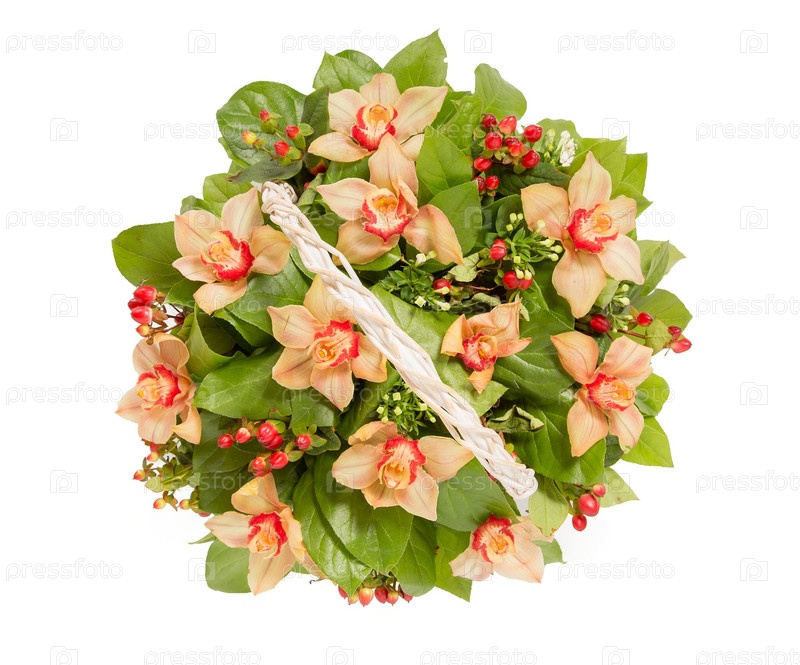 Букет цветов верхний вид на белом фоне