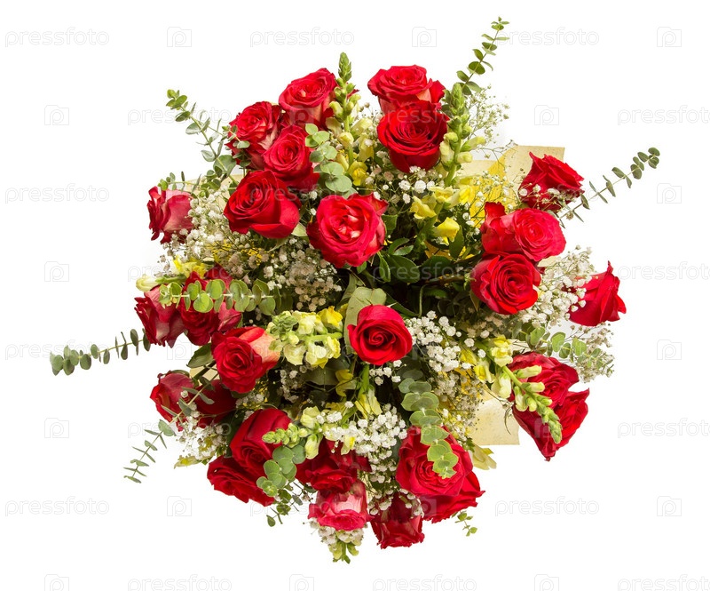 Букет цветов верхний вид на белом фоне
