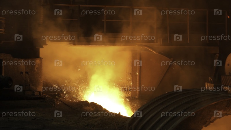 Жидкий металл из высокой печи, жидкое железо из ложки на сталелитейной фабрике