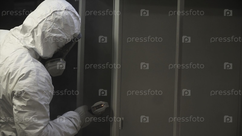 Мужчина рисует с помощью пистолета для распыливания краски в мастерской. Клип. Промышленное покрытие металла. Человек в защитном костюме, носящий газ. Профессиональный заводский работник окрашивает металл оружием на производственной автоматической линии п