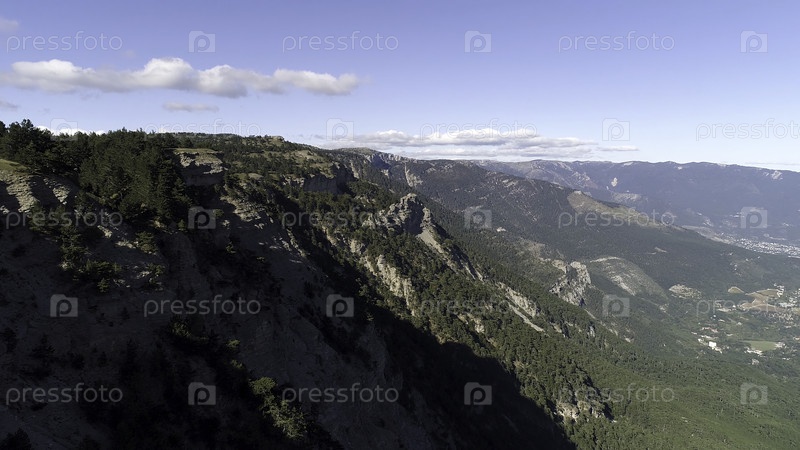 Красивый летний пейзаж, с горными вершинами, покрытыми лесом