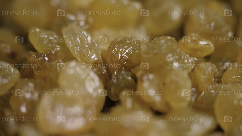 Близкий снимок большого количества желтых изюма. Скриншоты. Фон свежих желтых изюмов для приготовления сладких выпечки. Сладкие сухофрукты