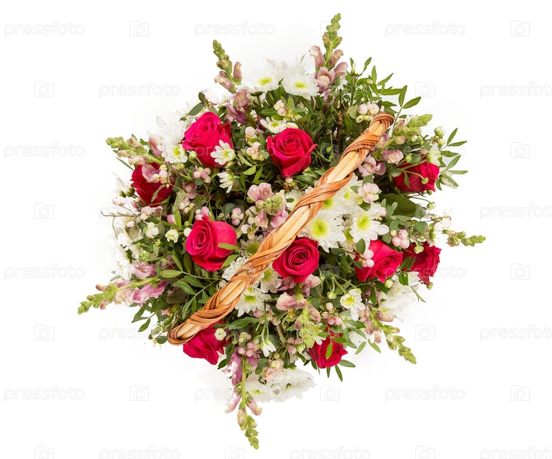 Букет цветов верхний вид на белом фоне