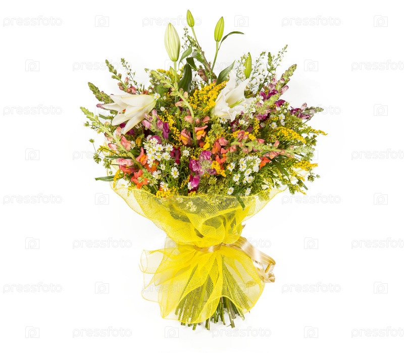 Букет цветов верхний вид на белом фоне