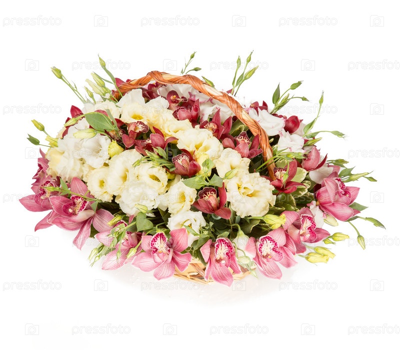 Букет цветов верхний вид на белом фоне
