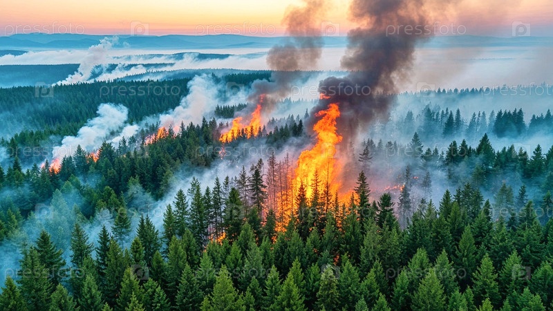 Лес в огне. Пожар в лесу. Горит лес, дым, огонь