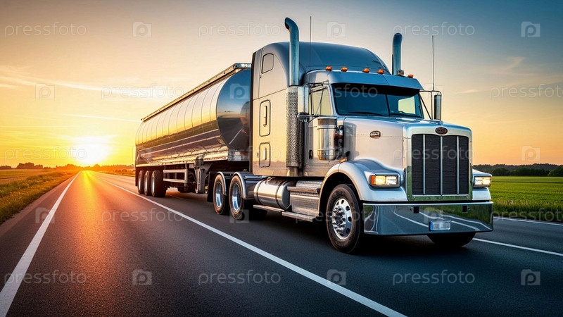 Грузовик на фоне заката солнца в сельской местности