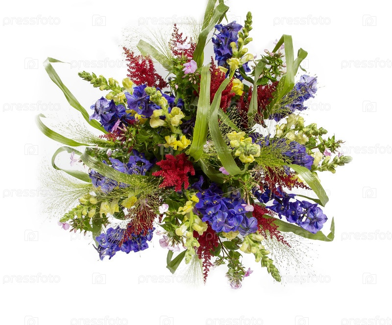 Букет цветов верхний вид на белом фоне