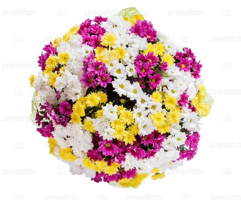 Букет цветов верхний вид на белом фоне