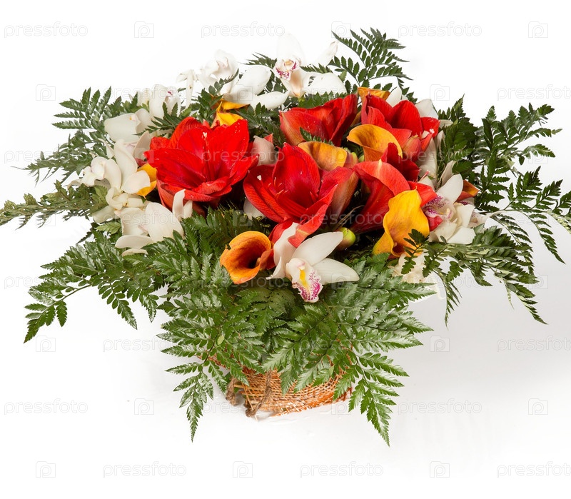 Букет цветов верхний вид на белом фоне