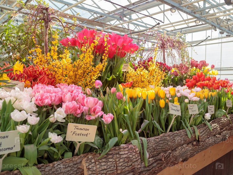Цветы в зеленой комнате. цветочный букет магазин. цветящие растения и многоцветные цветы внутри садового центра