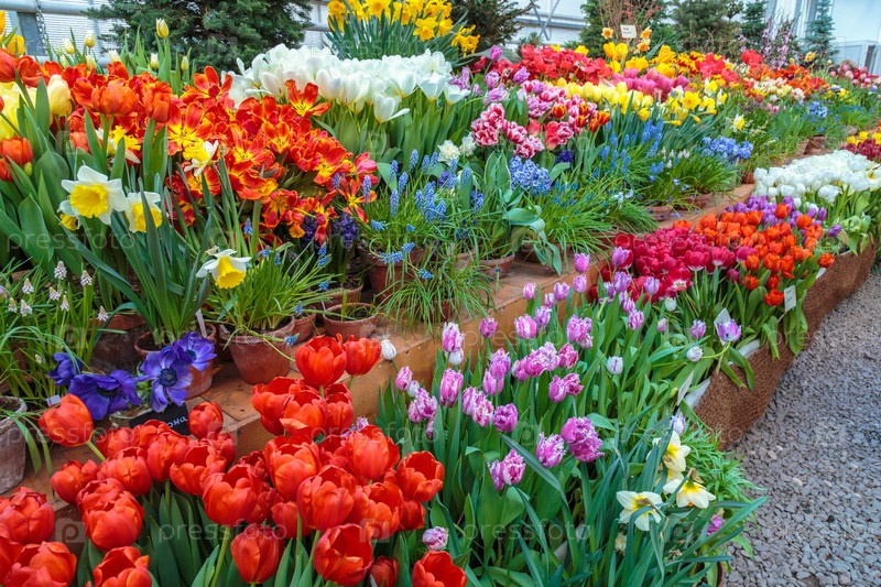 Цветы в зеленой комнате. цветочный букет магазин. цветящие растения и многоцветные цветы внутри садового центра