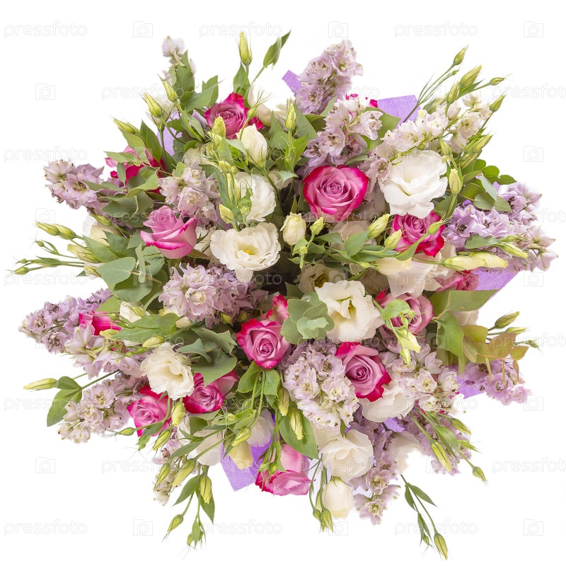 Букет цветов top view изолированный на белом