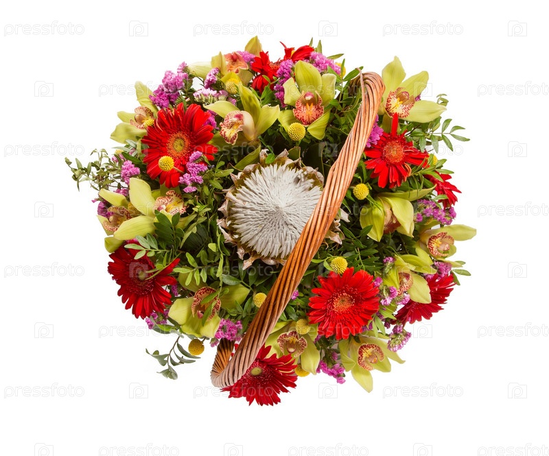 Букет цветов верхний вид на белом фоне