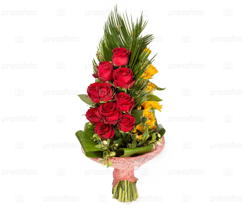 Букет цветов верхний вид на белом фоне