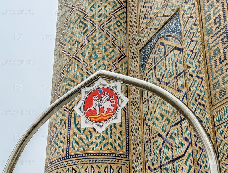 Герб Самарканда на фоне стенымечети Биби-ханым