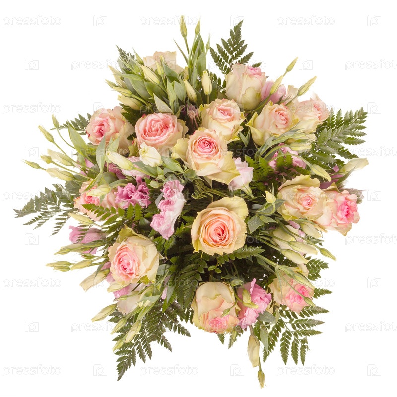 Букет цветов top view изолированный на белом