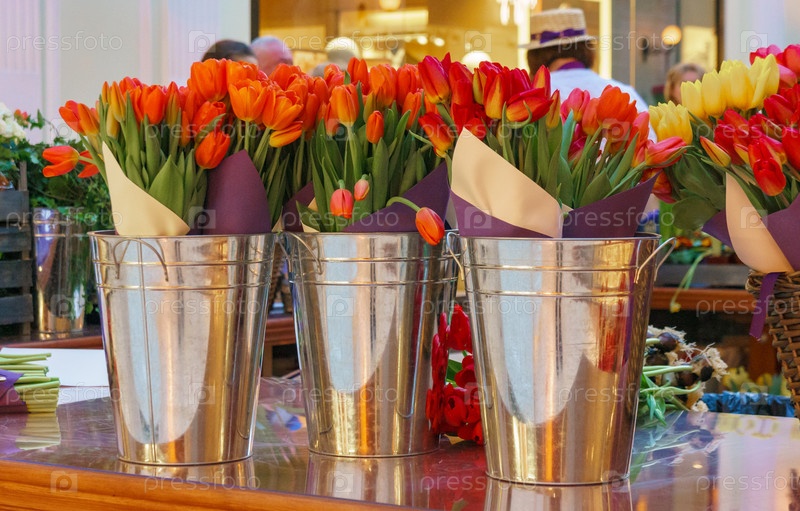 Концепция цветочного магазина. Близкий снимок красивого прекрасного букета смешанных цветов на деревянном столе. Цветовая композиция. Абстрактный фон цветков