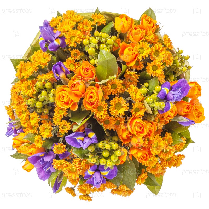 Букет цветов top view изолированный на белом